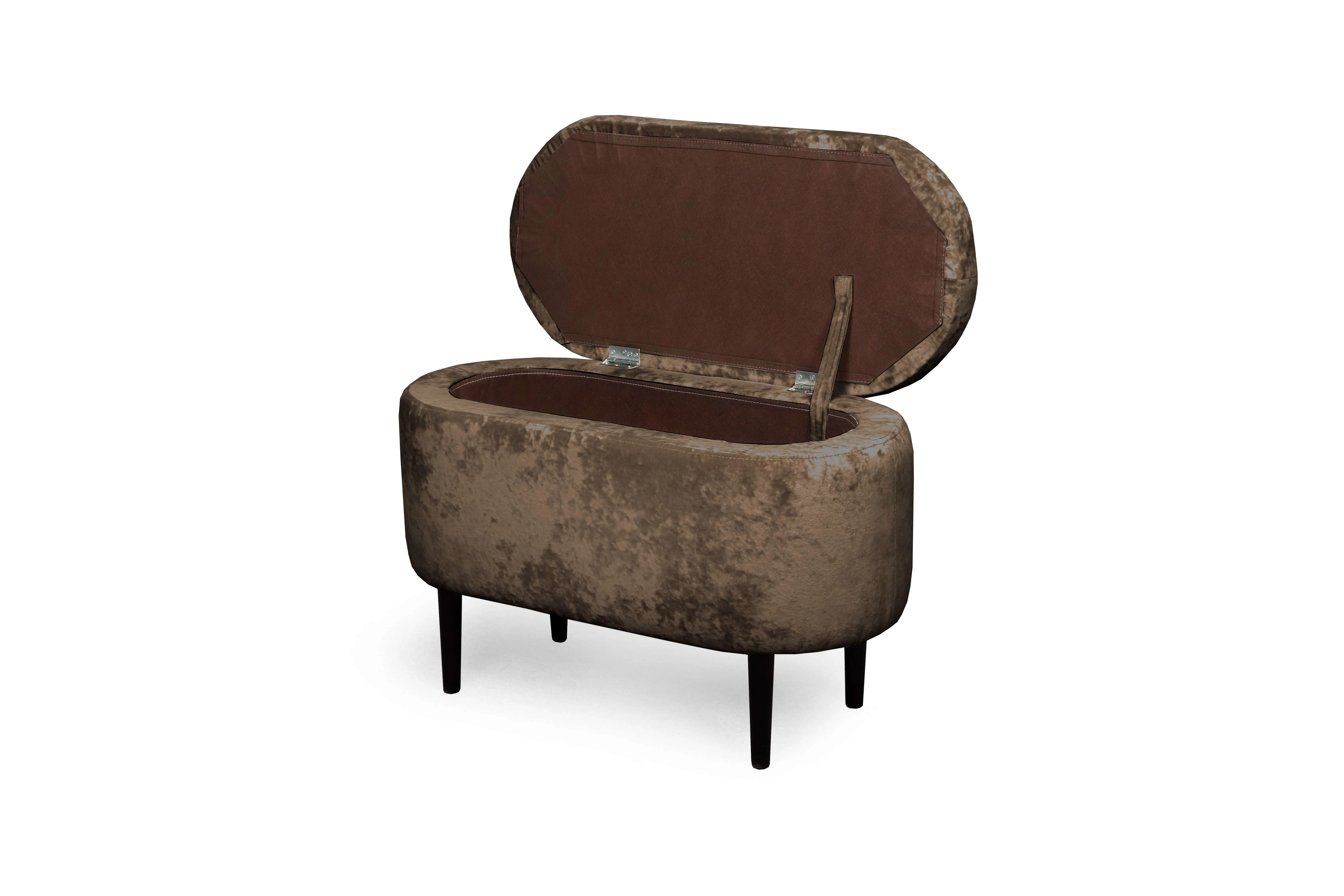 Мягкая обивка в ткани велюр с краш-эффектом добавляет приятный объем и украшает изделие. Опоры выполнены из массива берёзы и имеют защитные войлочные наклейки. Банкетка хороша не только в гостиной, но и в спальне, на кухне и в детской комнате. Максимальная нагрузка 100 кг.