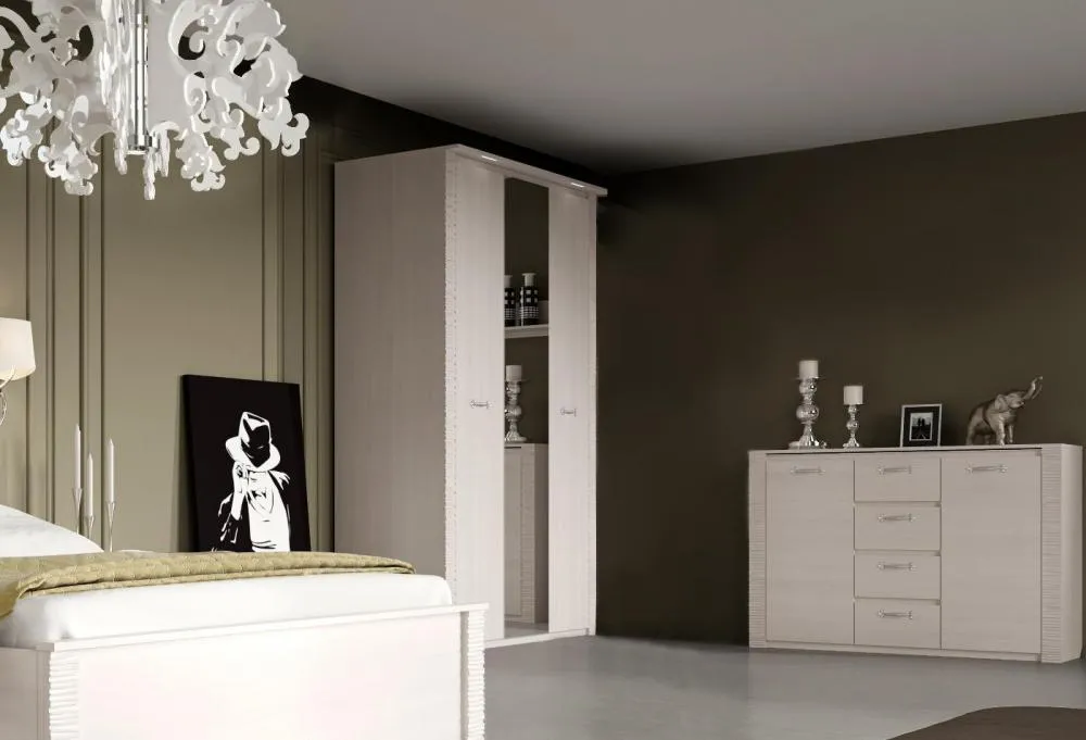 Серия мебели для спальни с нежным названием "Элана" такая же мягкая и романтичная. В ней воплощены самые актуальные тенденции мебельной индустрии, основой которых сегодня является акцент на мягкие, природные, естественные линии. Все это отражается в деталях коллекции: фрезерованные планки, подсветка, мягкие элементы кровати, - делают эту спальню изысканной и необыкновенной.