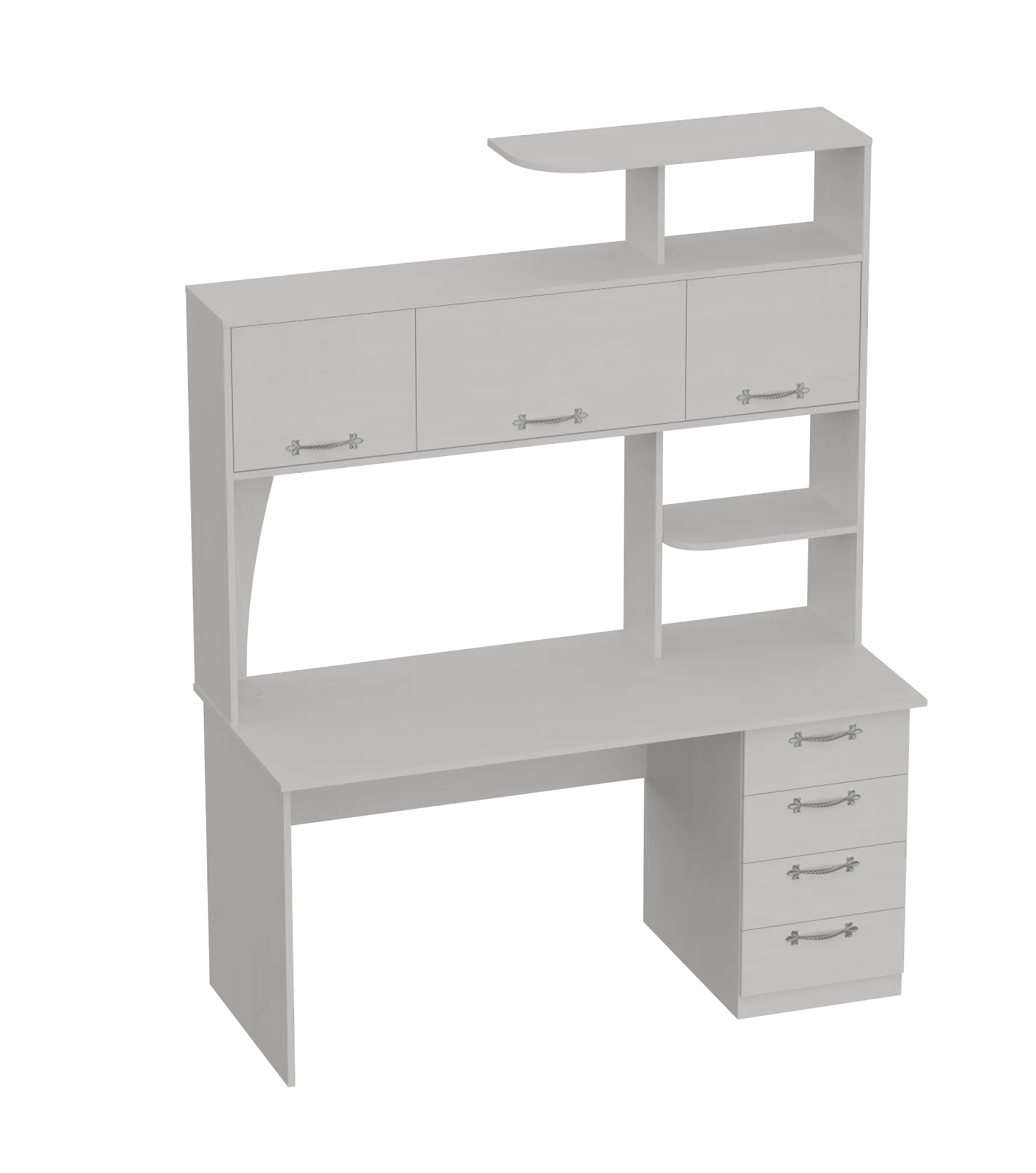 <virtues>1. Большое пространство в основной зоне стола, два монитора 27" помещаются без проблем; 2. Много полок под мелочь и бумаги.</virtues> <limitations>1. Толщина столешницы, хотелось бы видеть 2 склеенных слоя по 16мм, т.к. один слой не слишком надежен. Так же края столешницы спереди острые, хотелось бы скругленные хоть с небольшим радиусом.</limitations> <comment>Нюансы личного использования. 1. Ребро жесткости (12 деталь на схеме) сзади в плотную к краю столешницы, из-за этого закрепить кронштейн для мониторов к задней кромке стола нет возможности, хотелось бы чтобы это ребро жесткости подвинули от края на 5-7см. или между ним и столешницей оставили вырез тоже около 5-7см. Лично я буду сверлить столешницу для крепления двух мониторов на кронштейн NB F160. 2. Нет фанерной стенки для двух полочек расположенных справа на столе под первым ярусом. 3. Шкафчики внизу не на всю длину между опорными стенками, и если из них что-то выпадет, то придется вынимать нижний.</comment>