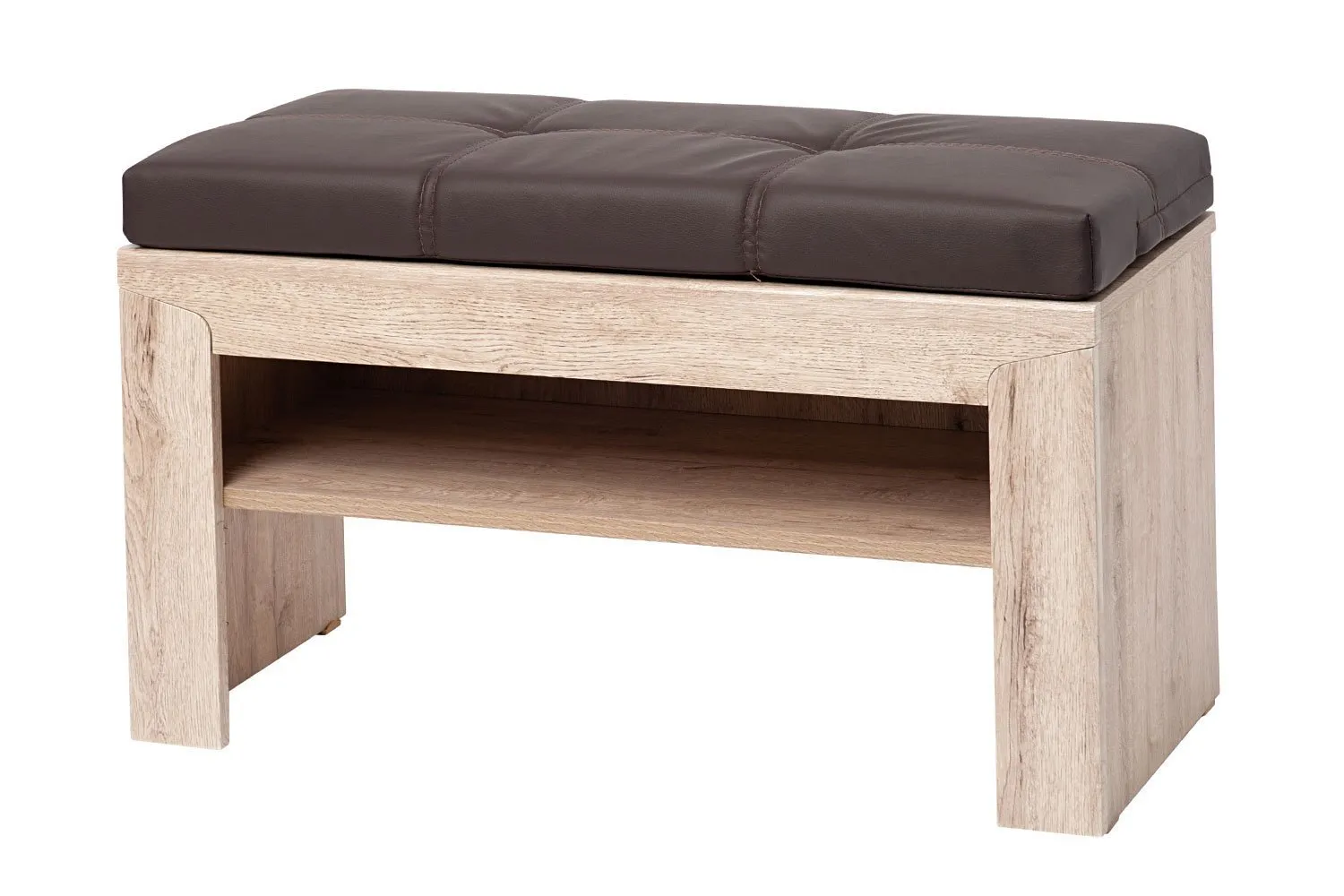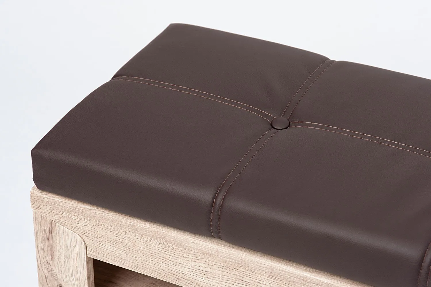 В верхней части тумбы имеется ниша для хранения. Сверху она комплектуется подушкой в цвете "Домус шоколад".