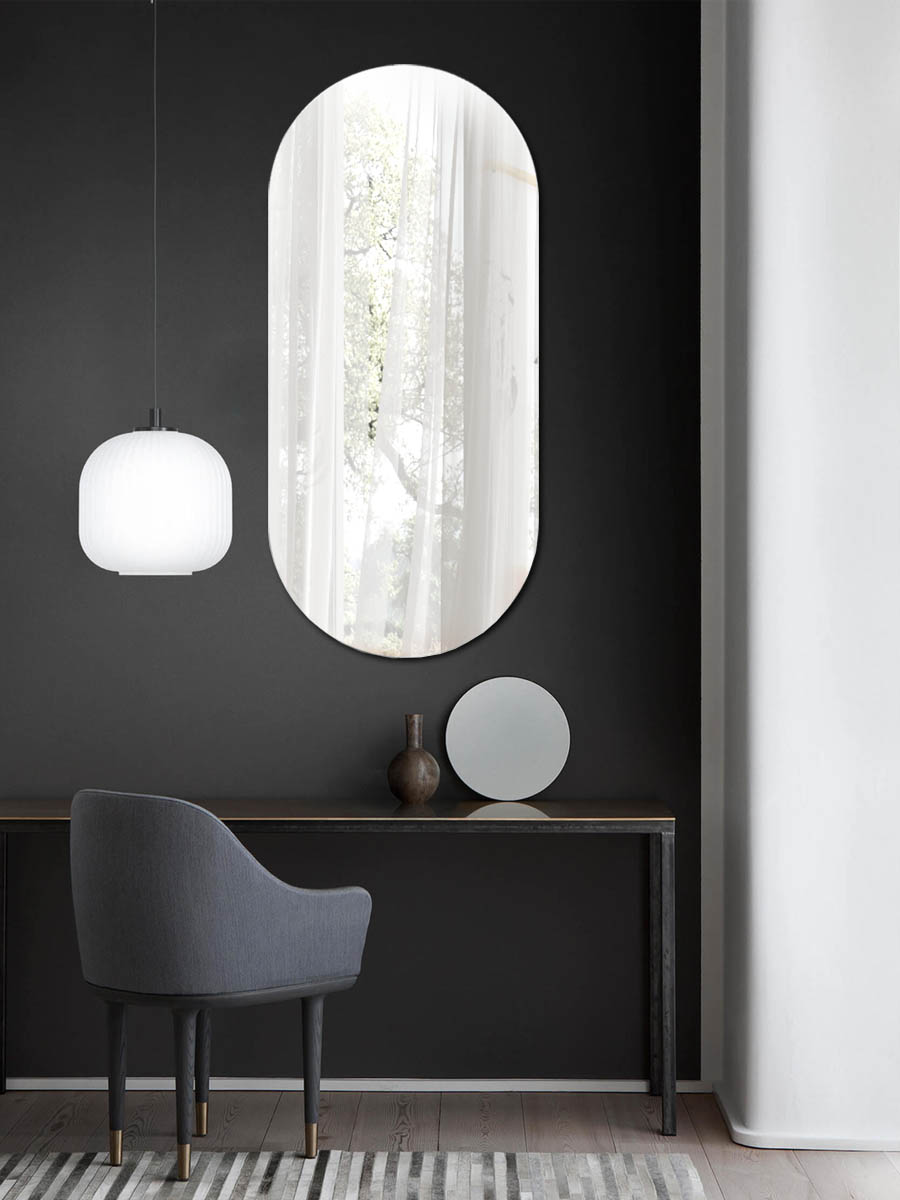 Изготовленное из прочного стекла без рамки, зеркало навесное гармонично впишется в любой дизайн, добавляя света и визуально расширяя пространство. Благодаря интересной форме, оно легко впишется в любой стиль и добавит изысканности вашему дому.