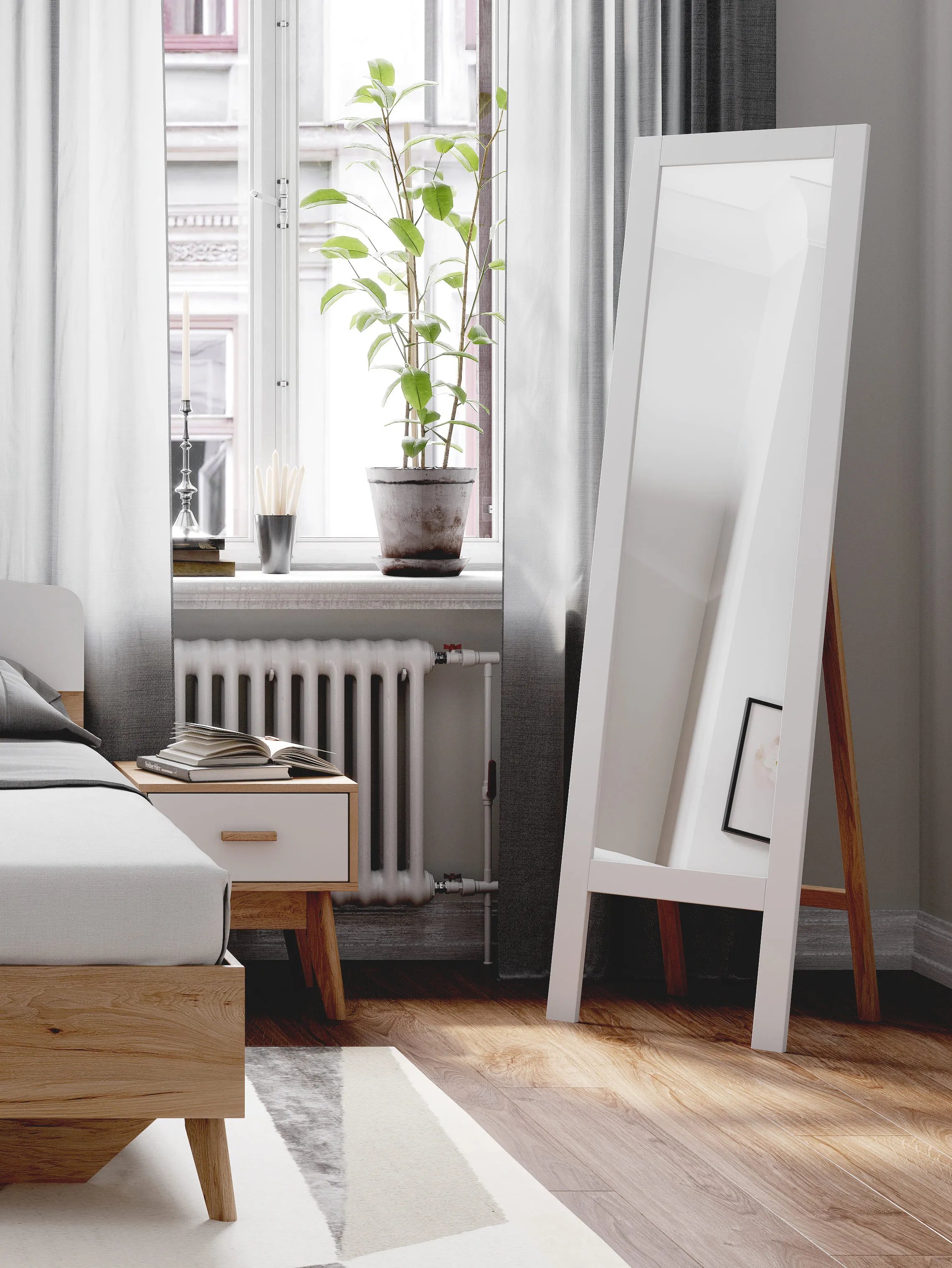 Напольное зеркало покорит Вас удивительным сочетанием простоты и элегантности. Вертикальная прямоугольная форма в сочетании с теплой древесной текстуры, создают идеальный баланс и моментально преображают интерьер. Простая, практичная спальня или гостиная станет стильной и привлекательной благодаря такому оригинальному объекту. При необходимости достаточно легко складывается. Удобно покажет вас в полный рост.